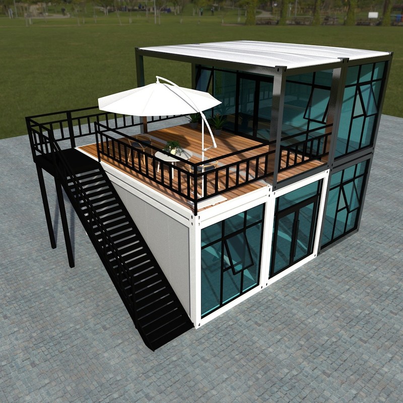 Dach | Dachrahmen ist vorinstalliert 1)Farbstahlblech (0,5 mm) 2)Glaswollisolierung (100 mm) Brandsicherheit:A 3)Purlin: Abschnitt C80 Galvanisierter Stahl (1,2 mm) 4)Decke: Stahl-Selbstverbindung Decke (0,5 mm Farbstahl) |